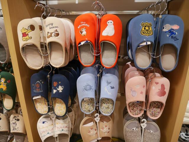 スリッパや枕カバー、タオル、マグカップ、エプロンなど、おうちで楽しめる可愛い&便利なディズニーグッズが、所狭しと並びます。
