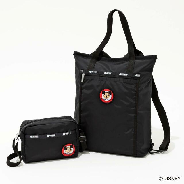 「ミッキーマウス・クラブ」のワンポイントワッペンが付いた黒のミニクロスボディーバッグとバックパックも加わり、レトロ感を演出します。