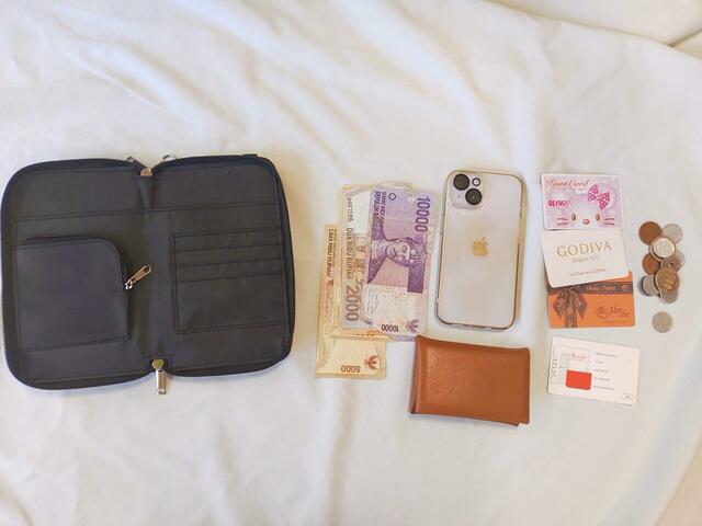 キプリングのキルティングスマホショルダーバッグに入れたアイテムは以下のとおり。