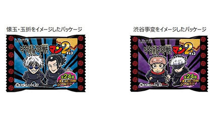 「ビックリマンチョコ」は、サクサクおいしいウエハースチョコ。今回、シールはTVシリーズ第2期放送中の「懐玉・玉折/渋谷事変」をテーマに全24種類を用意している。同商品のために、ビックリマンイラストレーターが全て新たに描き起こした。