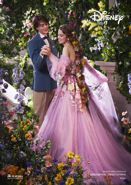 ディズニー好きだけでなく、他と違ったパープルドレスをお探しの花嫁さんにも、おすすめの一着です。