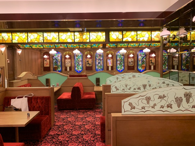 移転したあとも、同店を象徴でもあるステンドグラスやソファーなど、移転前の装飾を使用し、さらに「松本ステインドグラス製作所」が手がけた新しいステンドグラスも設置。