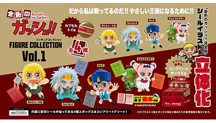 ケンエレファントは10月下旬に、「金色のガッシュ!! フィギュアコレクション Vol.1」を、カプセルトイとブラインドBOXにて発売する。価格は、カプセルトイが1個500円、ブラインドBOXが1個770円。ブラインドBOXは、カプセルトイのアイテムと「魔本フィギュア」のセットとなっている。また、コンプリートボックス(3080円)も用意する。