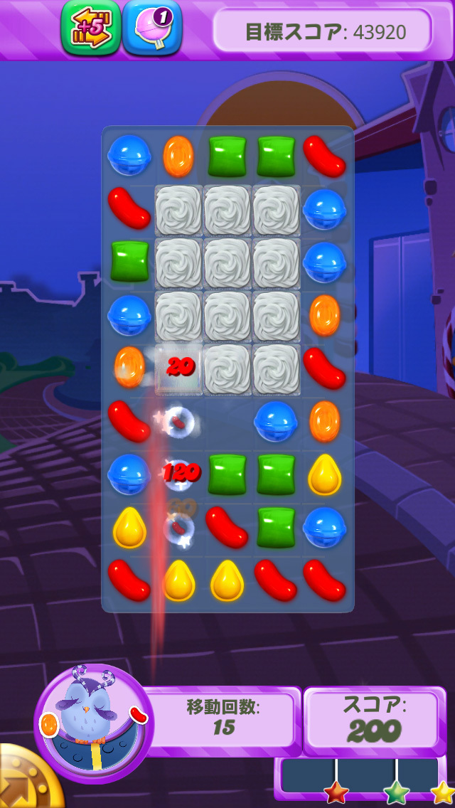 たとえばスペシャルキャンディーを使って画面内のキャンディーを一気に消すとオドゥスが落下してしまう可能性が高い。そのため、オドゥスが落ちないように、ステージのクリア条件と関係なくても特定の色を消す必要が出てくる。つまり、無駄にキャンディーを動かす必要が出てくるのだ。