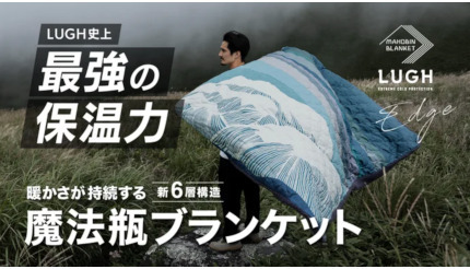 ジスクリエーションは10月3日~30日18時の期間、「魔法瓶ブランケットLUGH」史上最強の保温力となった「魔法瓶ブランケットLUGH Edge(ルー エッジ)」の先行発売を、応援購入サービス「Makuake」にて実施している。カラーは、ブルー、ベージュの2色。ラインアップは、SサイズとLサイズの2種類で、「Makuake」での価格はSサイズが9350円、Lサイズが1万8700円。配送は、11月下旬を予定している。