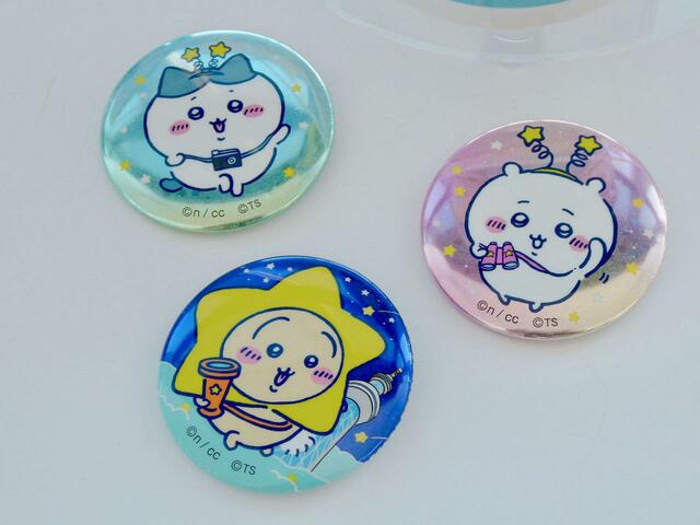 星のカチューシャをつけてはしゃぐちいかわ、星の被り物を被り、虫取り網で星を捕まえようとしているうさぎ、ちいかわとお揃いの星のカチューシャをつけて宝物のカメラを持っているハチワレの3人がそれぞれ描かれています。