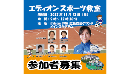 エディオンは11月12日に、「第2回 エディオンスポーツ教室」をBalcom BMW 広島総合グランド(広島県広島市)にて開催する。参加対象は小学4年生~6年生で、参加料は500円。定員は100名で、応募者多数の場合は抽選となる。
