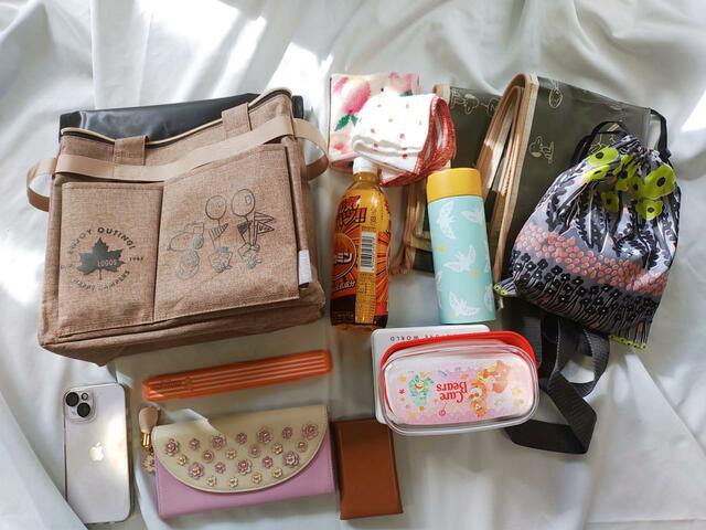 さっそくピクニックを想定して、お弁当・水筒・レジャーシートなどを入れてみました。