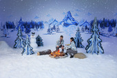 ミッキーたちのスキー風景を描いたフリースプリントものり、ミッキーの世界が詰まっています。