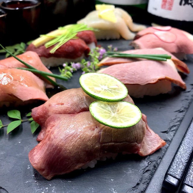 牛肉、鴨肉、馬肉など様々な種類のお肉がネタになっており、新鮮な肉の素材の味をそのまま味わえるのが人気の肉寿司。その肉寿司を食べ放題でお腹いっぱい食べることができます。