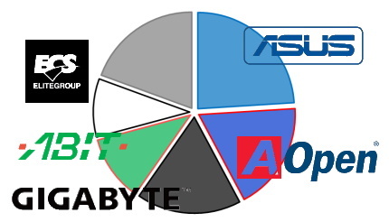 メーカー別の販売数量シェアを具体的にみていくと、ASUSTekは24.0%のシェアを獲得し首位。以下、AOpen(18.2%)、GIGA-BYTE(17.5%)、ABIT(11.1%)、elite(9.8%)と続く。23年9月現在でもASUSは33.7%で2位にランクインしており、20年以上にわたりマザーボード市場をけん引するメーカーの一つだ。