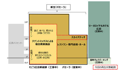 NTT都市開発は、「基町クレド」(広島県広島市)において、2023年8月31日で閉店した「そごう広島店新館」跡を中心に施設構成を刷新し、現在営業中のパセーラとともに商業施設全体を新生「パセーラ」として再生する。新生「パセーラ」は、2025年以降に順次開業予定。