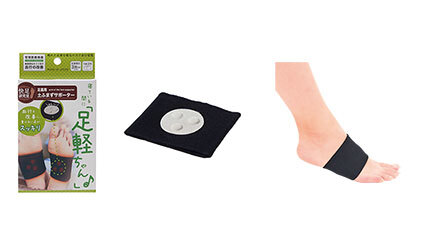 「足軽ちゃん 土ふまずサポーター」は、装着して寝ることで足の血行を促進してくれるサポーターで、血行不良による重だる足の解消に適したアイテムとなっている。