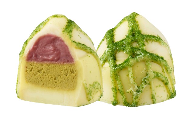 酸味の効いたチェリーガナッシュとなめらかなピスタチオのプラリネをホワイトチョコレートで包み、森の中でライトアップされたクリスマスツリーをイメージしたグリーンのラインとグリッターで飾っています。
