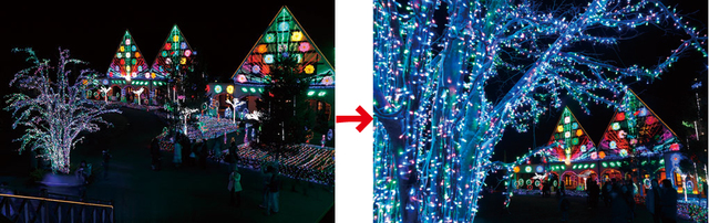 同じイルミネーションを撮影するにも、どこから狙うかで大きく印象は変わります。たとえば子供の目線のように、かがんで下から見てみると、ほら!見えてくる世界もずいぶん変わりますよね。ちょっと工夫して、いつもとは違う位置から撮影してみましょう。