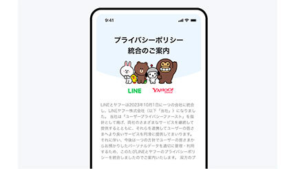 10月1日にLINEとヤフーが一つの会社「LINEヤフー」に統合したのを機に、両社のプライバシーポリシーを統合した「LINEヤフープライバシーポリシー」が策定・公表された。10月4日から順次、LINEやヤフーの各サービス内で同意画面が掲出されており、新しいプライバシーポリシーへの同意を求めている。