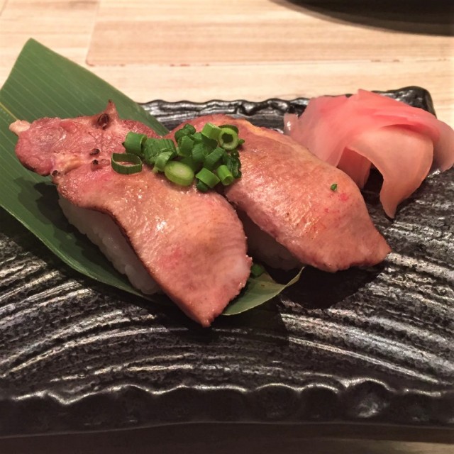 食べ放題メニューの一品「牛タンの炙り肉寿司」はコリコリの食感でさっぱりと食べることができます。ヘルシーなのでカロリーを気にする方や、女性の方にもオススメです。