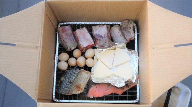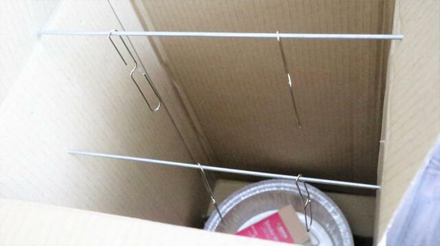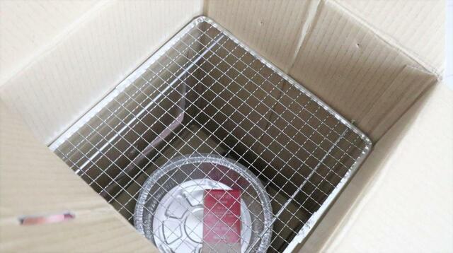 金棒の上に網を置いたら、段ボールスモーカーの出来上がり。