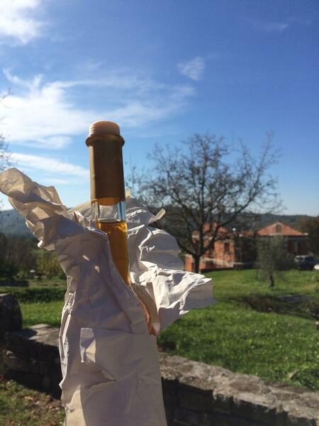 最初に行った村で、ビスカ(ブランデーの一種)というお酒を買い、旅の間ずっとこの瓶を持ち歩いていました。