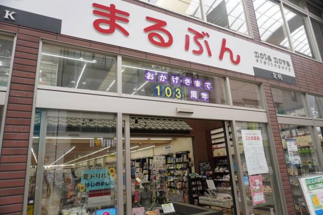 大正9年(1920年)創業の老舗本屋「金龍堂まるぶん店 」。103年もの歴史がある、市民に愛されてきた町の本屋さんです。入口には、なぜか河童が鎮座しています!
