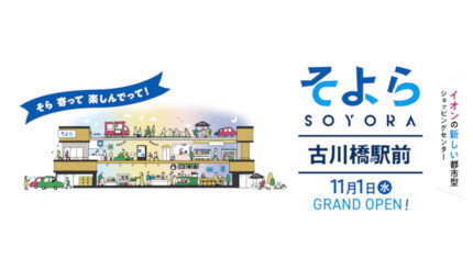 イオンリテールは11月1日に、「イオンスタイル古川橋駅前」を核店舗とした都市型ショッピングセンター「そよら古川橋駅前」(大阪府門真市)を、京阪本線古川橋駅前にオープンする。
