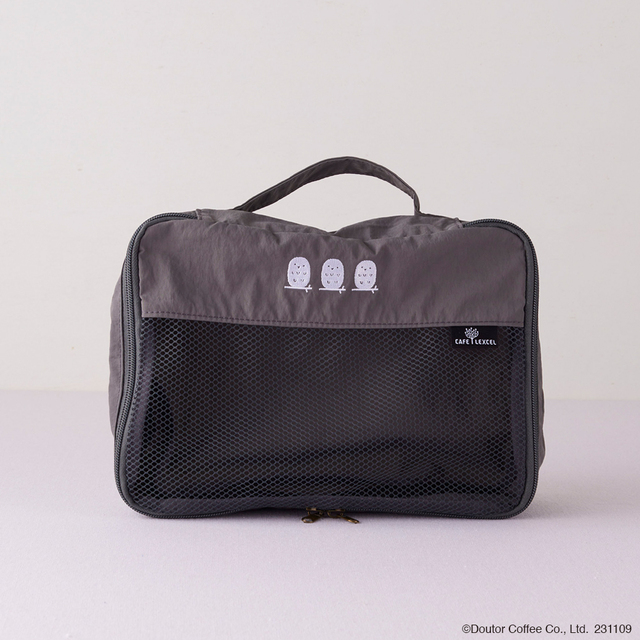 薄くて軽く中身が見やすいメッシュ仕様のポーチ。店舗限定商品はkippisⓇの幸福の象徴「フクロウ」デザインを、オンラインショップ限定商品はkippisⓇのテキスタイルデザイン「Meimi(メイミ)」を全面にあしらった仕上がり。(サイズ:約H190×W250×D90mm)