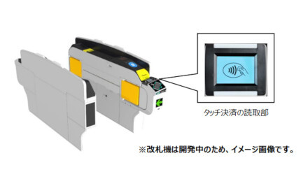 2024年中の開始を予定するタッチ決済を利用したタッチ決済では、タッチ決済対応のカード(クレジット・デビット・プリペイド)や、タッチ決済対応のカードが設定されたスマートフォンなどを、改札口の専用リーダーにタッチすることで利用できる。