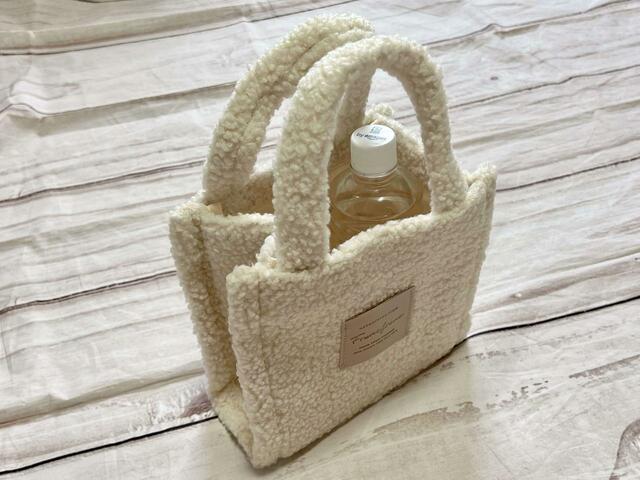 ボアトートバッグのサイズは、W20cm×D9.5cm×H18cm。ちょっとしたお出かけにぴったりなサイズ感です。