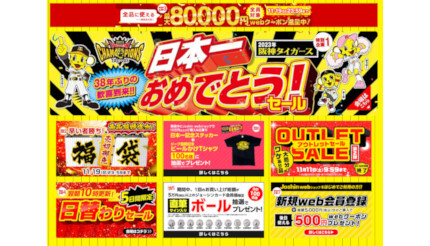 オフィシャルスポンサーとして長年、阪神タイガースを応援しつづけている上新電機は、「38年ぶりの歓喜到来!!」と銘打った「阪神タイガース 日本一おめでとうセール」をオンラインショップ「Joshin webショップ」で開催している。最終第7戦までもつれ込んだ日本シリーズで11月5日夜、阪神タイガースは7対1でオリックス・バッファローズとの戦いを制し、日本一に輝いた。「日本一おめでとうセール」は興奮冷めやらぬ翌6日0時から開催している。