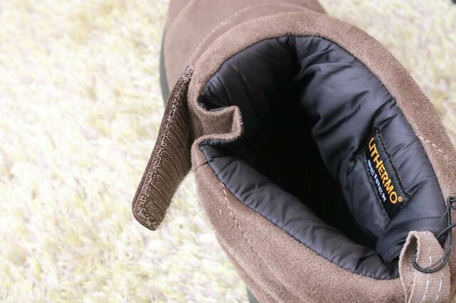 このブーツはサイドに面ファスナーがついていて履き口がガバッと開くので、脱ぎ履きが楽ちんです。