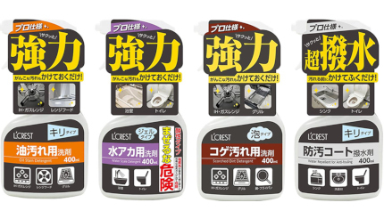コメリは11月7日に、オリジナルブランド「L'CREST(ルクレスト)」から、年末の大掃除に最適な「油汚れ洗剤 400ml」「水アカ用洗剤 400ml」「コゲ汚れ用洗剤 400ml」「防汚コート撥水剤 400ml」の、住居洗剤4種類の販売を、同社の展開する「コメリパワー」「コメリハード&グリーン」店舗(一部を除く)、およびオンラインショップ「コメリドットコム」にて開始した。いずれも価格は598円。