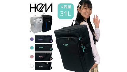 今回、販売が開始された「HeM ロビン・ボックス型」は、「HeM ロビン」シリーズ初のボックス型リュックで、たくさんの荷物を出し入れしやすい形状を採用するとともに、タブレット端末やノートPCといったデジタル端末の収納に適したクッション付きの専用ポケットを備えている。