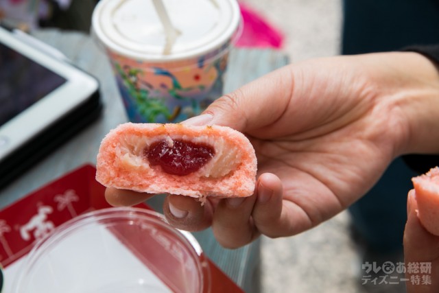 ミッキーとミニーの焼き印がかわいらしいデザートには、白にあずきクリーム、ピンクにストロベリージャムが入っています。