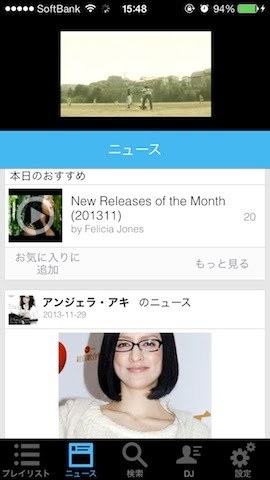 Facebookと連動させることで、あなたが「いいね!」したデータをもとにプレイリストを作成することもできます。「ニュース」ページでは、本日のおすすめ動画やニュースを配信。上部で動画を再生しながらニュースなどを読んだり、プレイリストを探したりと、さまざまな楽しみ方ができます。