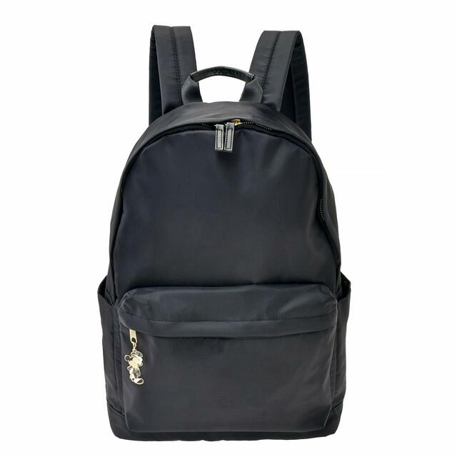 リュックサックは、黒一色な中にミッキーのチャームが存在感を放ちます。