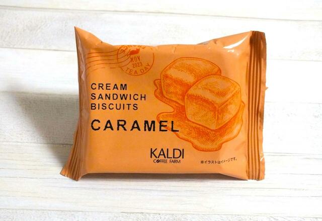 全粒粉を使用したビスケットで、キャラメルソース入りのクリームがサンドされています。