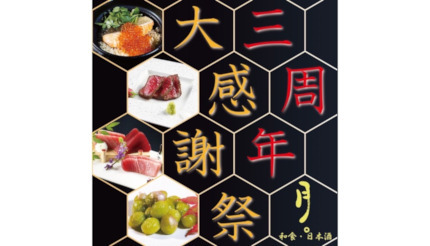 Light&Hopeは11月1~30日の期間、創作和食店「月。」(東京都品川区)が開業3周年を迎えた感謝を込めて「三周年大感謝祭」を実施する。
