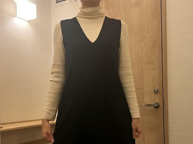 今回は、この「マルチウェイリブニットワンピース(長袖)」を実際に購入し、5wayのコーディネートを紹介します。