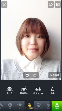 LINE cameraはLINEの公式アプリ。他のアプリ同様、肌やデカ目の加工ができるのはもちろんのこと、鼻を小さくしたり、バストアップすることまで可能!! 鼻の小さくしたい部分や胸の膨らませたい部分をタップするだけで、カンタンに修正完了です。