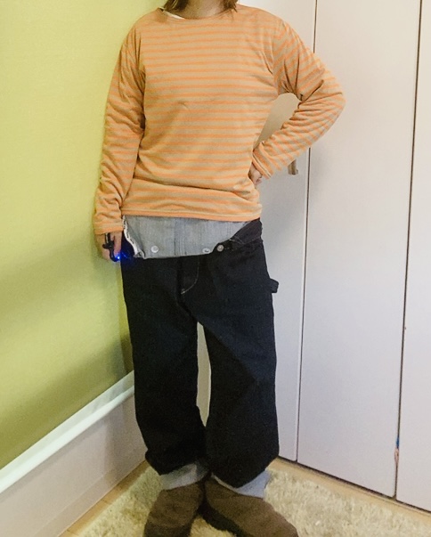 オレンジのボーダーシャツを合わせたカジュアルコーデに挑戦。