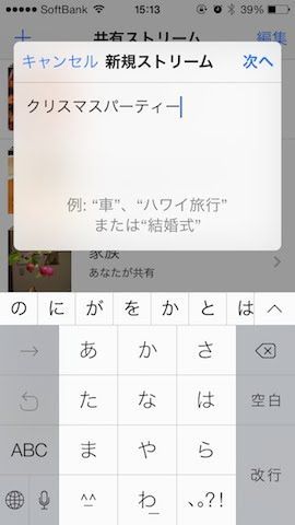2.友達と写真を共有する場合は、「共有ストリーム」を作成します。