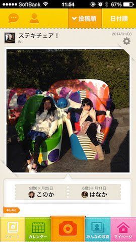 撮影した写真はすぐにガラケーやパソコンに送ることができて、さらに送りたい人を登録メンバーから選ぶだけと簡単。見た人の足跡も付くので、誰が見たのかもチェックできて便利です。子供の成長記録を残したいママパパにおすすめ!