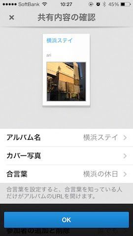 これで、相手には招待メールが送信されるので、友だちが承認してくれれば写真を共有することができます。