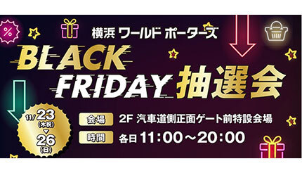 23日の祝日や25~26日の週末は横浜ワールドポーターズでBLACK FRIDAY限定の商品やグルメを楽しみ、抽選会にもチャレンジしよう。