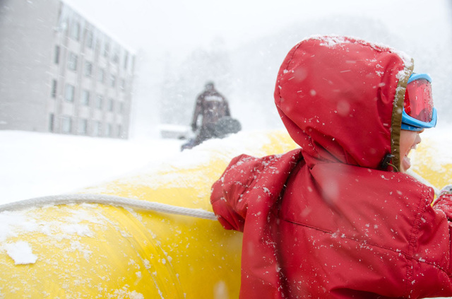 が、タングラムでは、キッズパーク以外にもアクティビティが豊富にありました。まず、スノーラフティングに挑戦しました。4歳の娘は、けっこうなスピードで雪上を滑るのが楽しくてたまらなくて、銀世界に「キャーキャー」と歓声が響き渡ります。