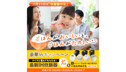 日本食に欠かせないお米の収穫への感謝と、さらなる消費拡大を願って、2016年に毎年11月23日を「炊飯器の日」と定めた。キャンペーンでは、クイズに回答した人から抽選で7人に各社のIH炊飯器がプレゼントするほか、同法人の公式Xアカウント(@JEMA_suihanki)をフォローし、対象となる投稿をリポストするとごはんのおともが当たる抽選で15人に当たるSNSキャンペーンを開催する。