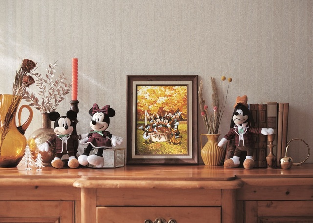 ミッキーたちの秋冬らしい装いがキュートな、ディズニーファンタジーショップ2023秋冬号の表紙アート。
