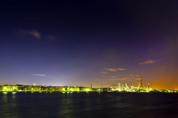 空がどんどん暗さを増し、灯りがともった工場の存在感が徐々に増していく。