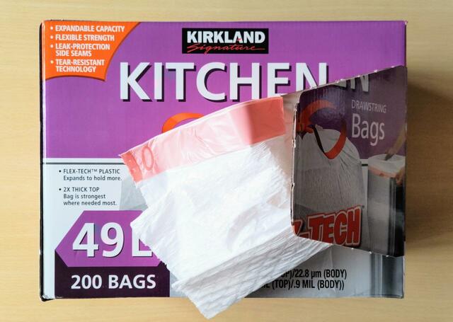 1.コストコ カークランドシグネチャー ひも付き ゴミ袋 49L 200枚 3568円