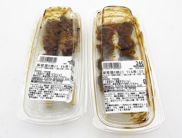 「ねぎま」は中国製造ということですが、その他の「鶏皮」「もも」の産地がわかりません。しかし、『サミット』のふんわりとした仕上がりに比べると、やや硬めに焼き上がっています。